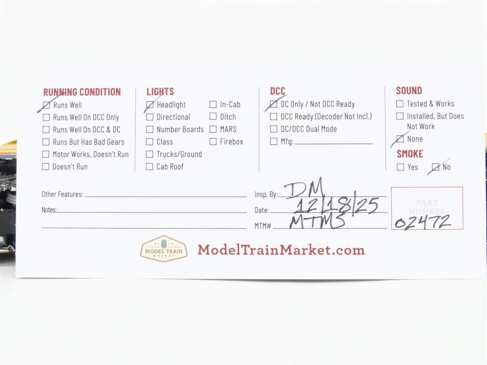 Running Condition: Runs but is noisy as a typical older Athearn locomotive is