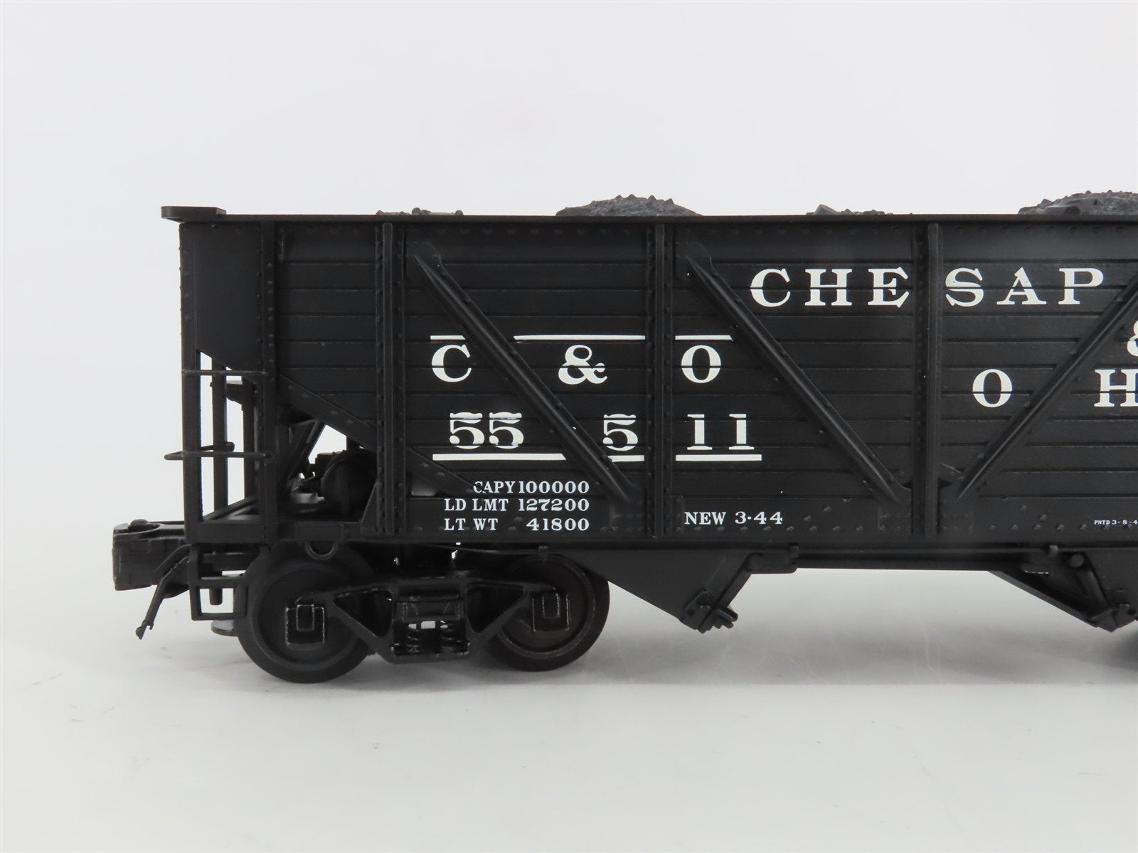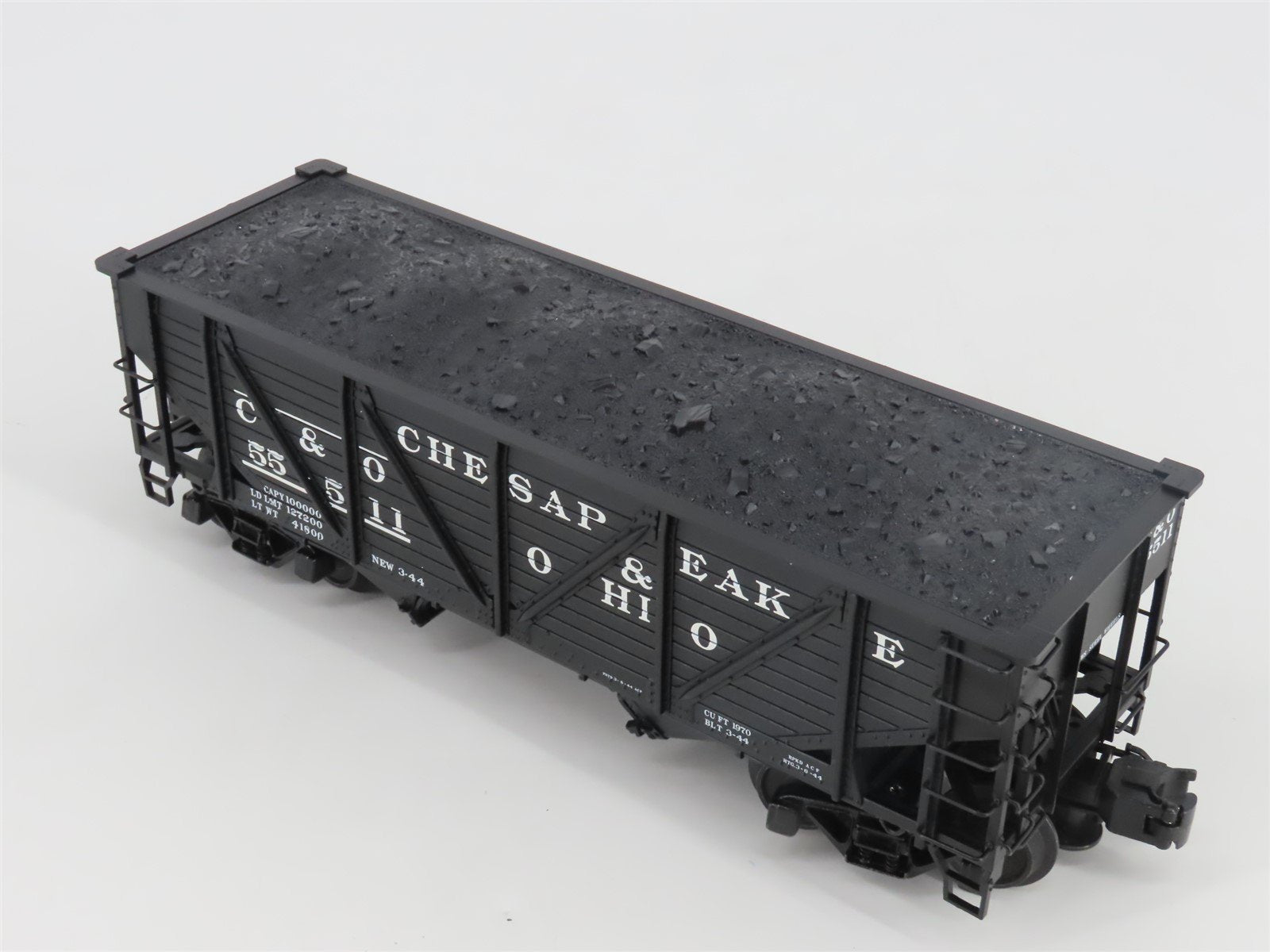 O Gauge 3-Rail Atlas 6423-6 C&O 50-Ton War Emergency 2-Bay Hopper #55511 w/ Load