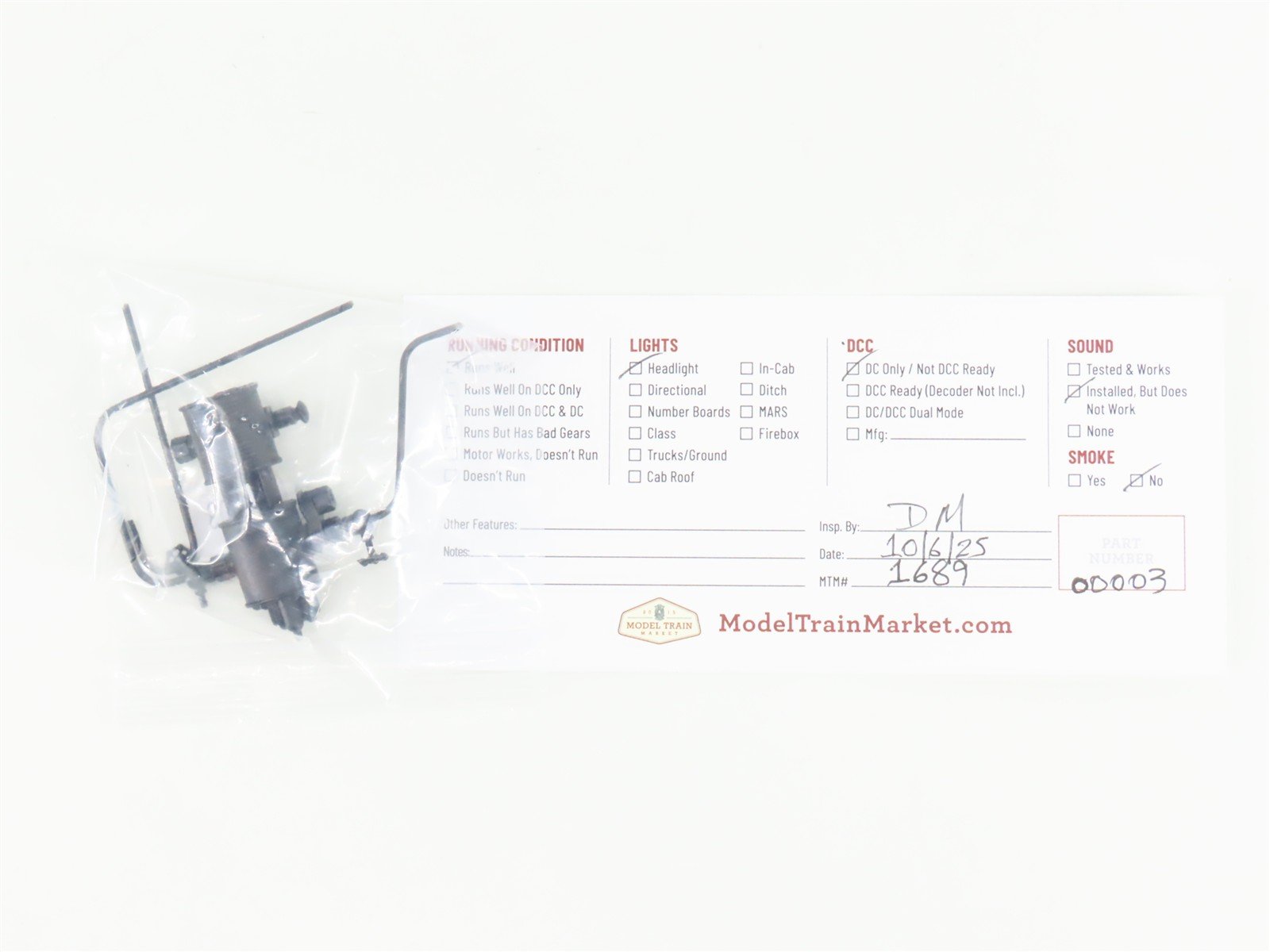 Locomotive is custom work, rebuilt from a standard 4-6-0 into Camelback - Sound not working. It has been modified to run off of track power, but the speaker just makes popping noises - Rear light not working - Detail on left side is broken, but included - Some other details are damaged or missing - Dirt buildup and other general wear - Please see photos for overall condition