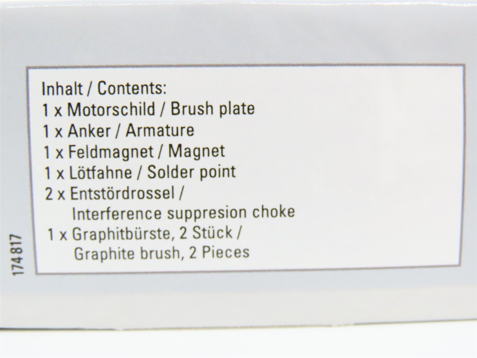 This set is for upgrading many Märklin HO locomotives with smaller design flat-style commutator motors to the five-pole, high-efficiency motor. The set consists of a high-efficiency motor and installation hardware.