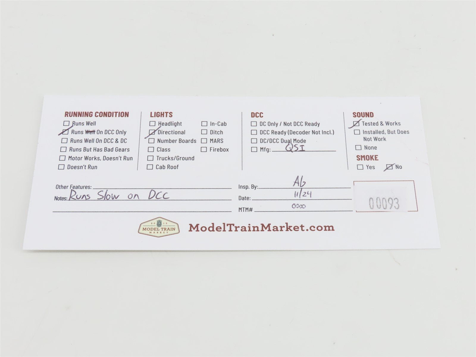 • Running Condition: Runs Slow on DCC only
