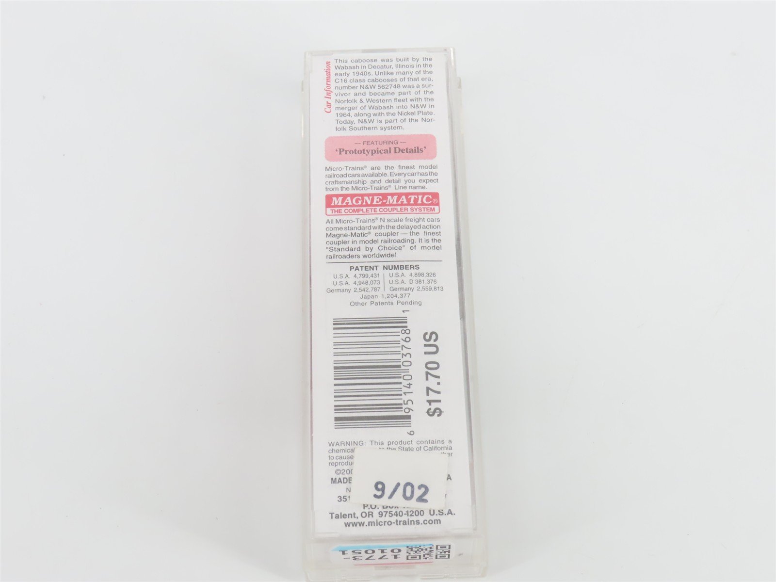 N Scale Micro-Trains MTL 100170 N&W Norfolk & Western 36' Caboose #562748