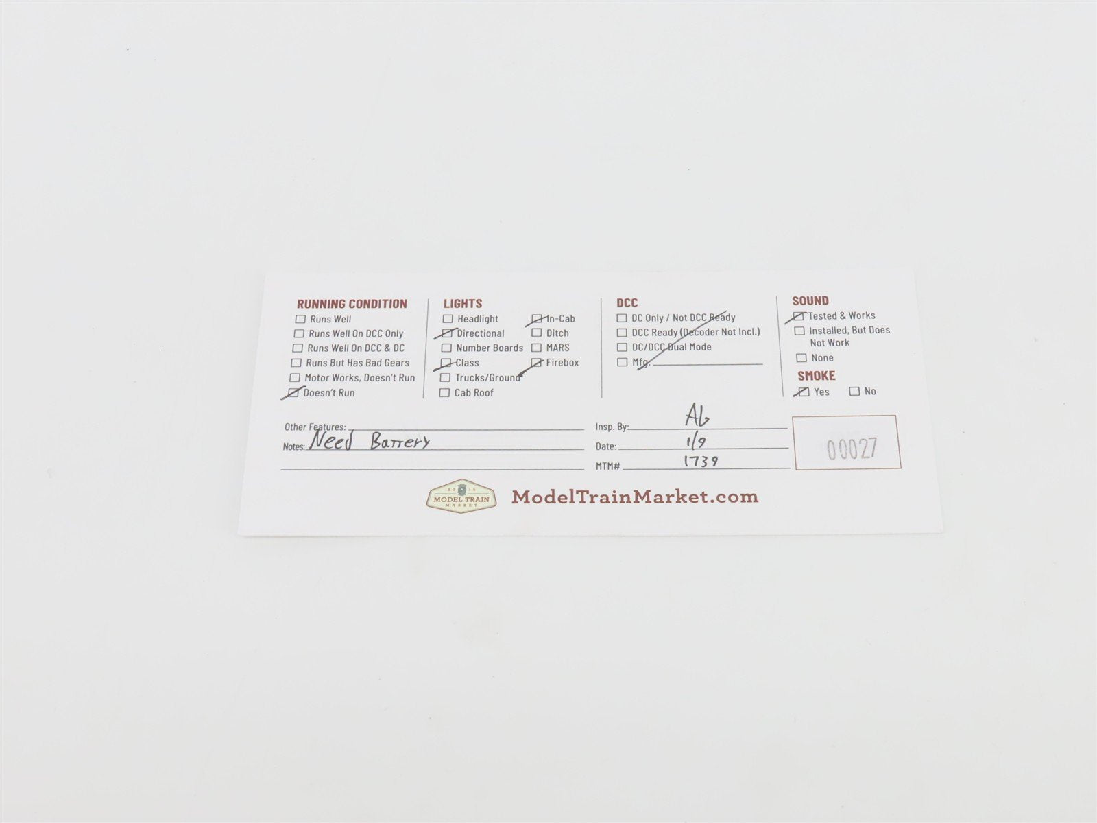 Unit may need Proto Sound battery is dead and must be replaced before use (not included, sold separately: MTH 50-1008 #BG-4000005 8.4v Rechargeable Battery to run