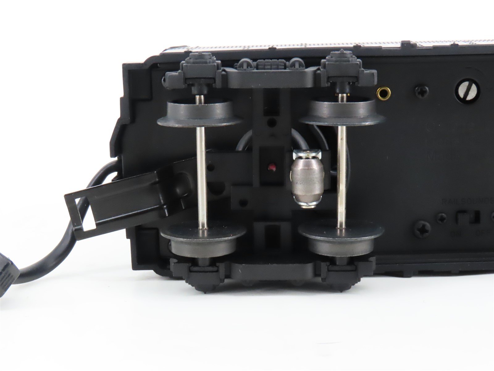 Sound not working, speaker just makes popping noises (problem unknown) - Some minor paint rash and other general signs of minor wear - Smoke fluid not included - Box has some damage