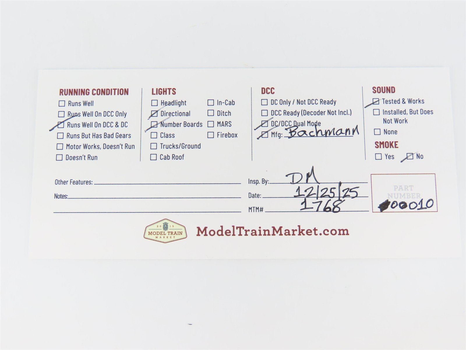 • DCC Manufacturer ID: Bachmann