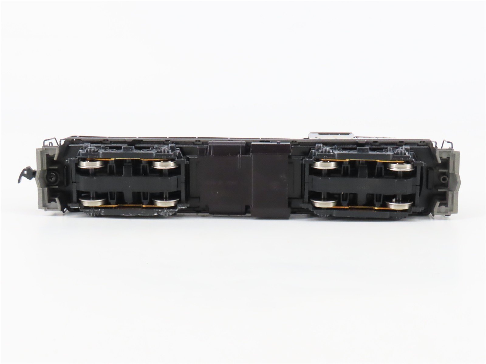 The 8 in the road number is actually a 3, with the empty space painted in to make it an 8 - The screw to attach one of the couplers is missing - Horns & grilles on top of the hood are custom painted - Trucks custom weathered - Has a clear coat custom finish applied over the paint, with finger marks & smears