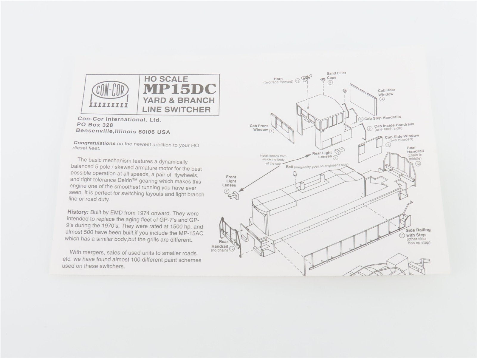 HO Scale Con-Cor 001-155302 UP Union Pacific MP15 Diesel Locomotive #1007
